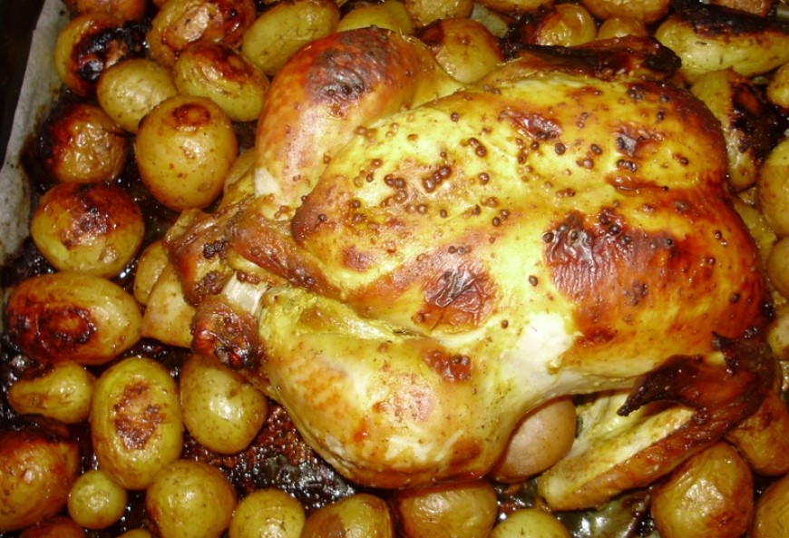 Этот способ требует времени, но результат того стоит. Курица получается с хрустящей корочкой, картофель пропитывается соками и специями, а запах заполняет всю кухню. Подготовка несложная, главное — правильно замариновать мясо и всё хорошо прогреть.