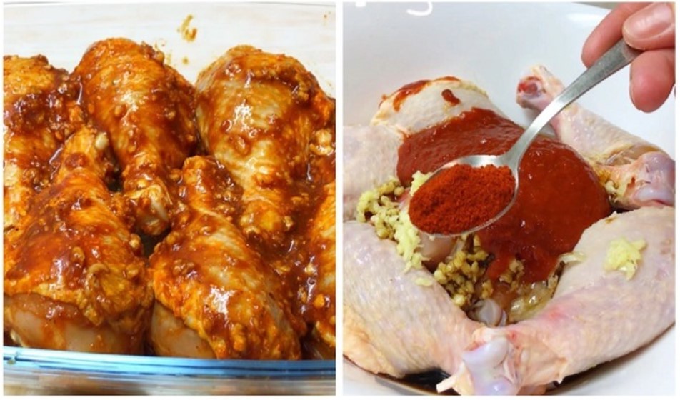 Если планируется запекание или тушение, курицу стоит замариновать. Используется тёплая смесь из томатной пасты, молотой паприки, измельчённого чеснока, мёда, масла и щепотки жгучего перца. Всё хорошо перемешивается, втирается в мясо и оставляется минимум на два часа, лучше на ночь. Это делает волокна податливыми и насыщает вкусом.