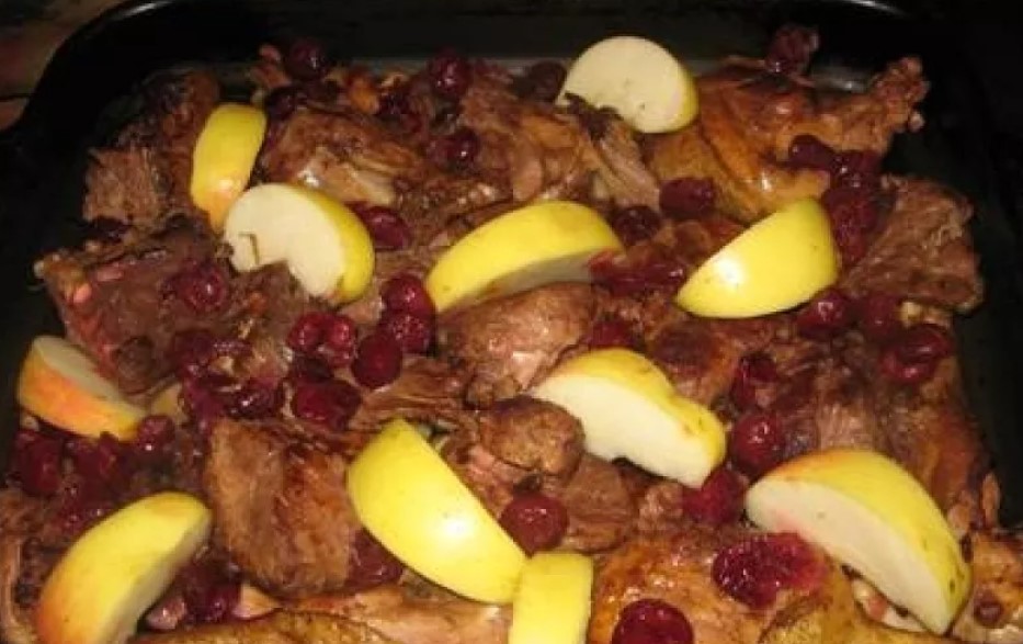 Утка кусочками запечённая в духовке с курагой