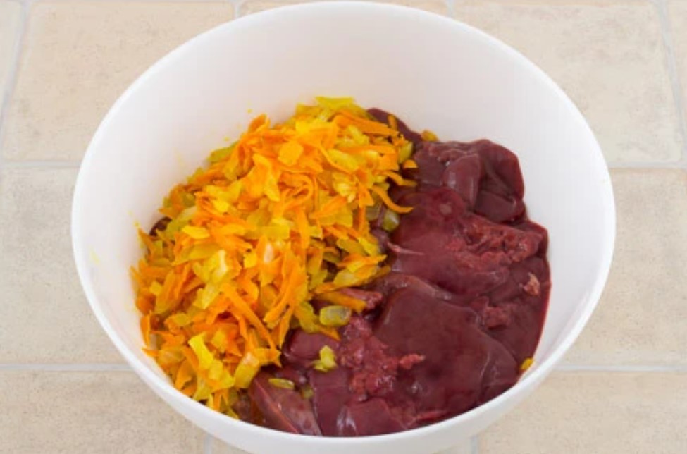 Готову печінку слід промити, зняти плівку та нарізати шматочками. Моркву почистити й натерти на дрібну тертку. Усі інгредієнти подрібнюються блендером до однорідної маси. Суміш розкладається у змащені формочки.