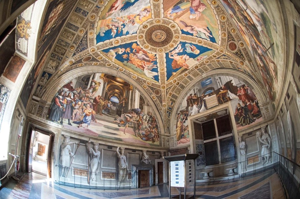 Це чотири зали, створені Рафаелем та його учнями. Кожен зал – величезна фреска, де оживають історія, філософія, богослов’я та політичні події. Найвідоміша робота – “Афінська школа”, де античні філософи оживають на стінах у спокійних блакитних тонах.