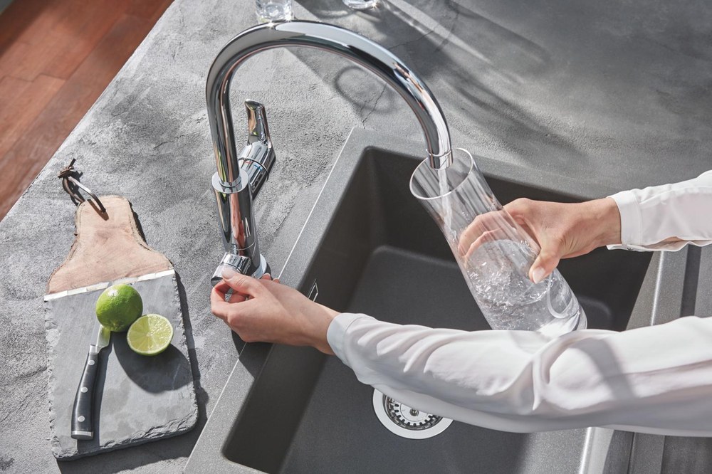 У моделях Grohe з фільтром управління продумано так, щоб відокремити подачу питної води від звичайної. Для кожного потоку є своя зона керування, тож не доводиться згадувати, у якому режимі зараз працює змішувач. Це допомагає уникнути ситуацій, коли фільтровану воду витрачають на миття або технічні потреби.