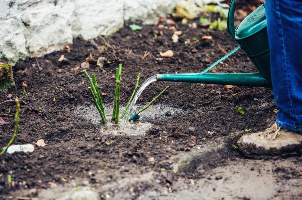 Перші 2–3 тижні важливий рівномірний полив без «болітця» — корені мають дихати. Поливайте глибоко, але з паузами для підсихання верхнього шару. У спеку мульча зменшує випаровування і перегрів. Видаляйте перші поодинокі бутони на ослаблених кущах — кущ інвестує в кореневу систему, а не «піднімає» поодиноке цвітіння.