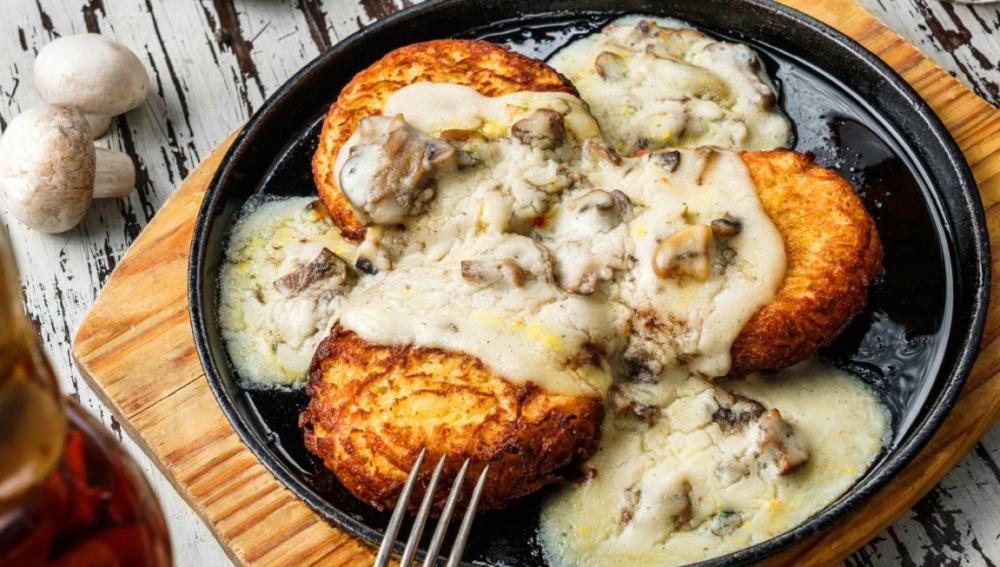 Що стосується харчової цінності, калорійність дерунів з кабачків і картоплі залежить від способу приготування. У духовці вона становить приблизно 120–140 ккал на 100 г, при смаженні — до 190 ккал, що пов’язано з кількістю олії. Соус із йогуртом знижує загальне навантаження, на відміну від жирного сиру або вершків.